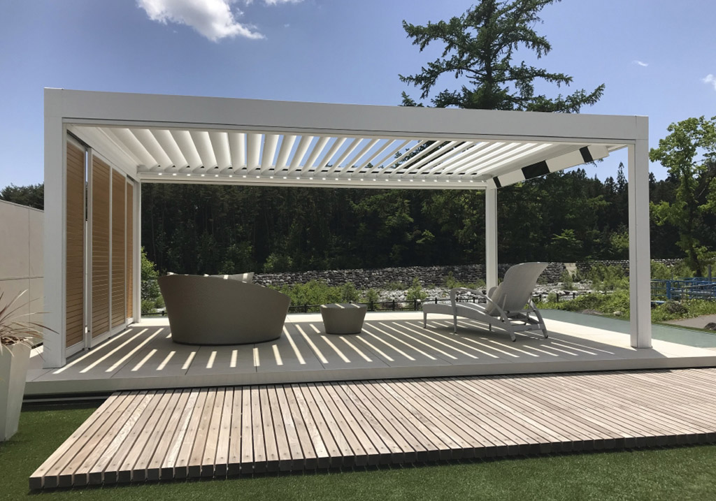 With a pergola, you can enjoy your own garden all year round. Nature gives you space to breathe and energises you, and the best way to maximise that — whatever the weather — is with an aluminium pergola. Integrated heating, speakers and lighting help create the ultimate outdoor experience: the comfort of the indoors, surrounded by nature.
